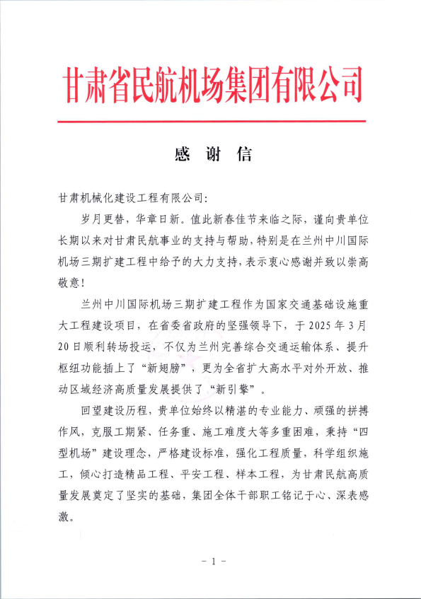 近日,我司接連收到甘肅省民航機(jī)場集團(tuán)、湖南機(jī)場建設(shè)指揮部發(fā)來的感謝信,對我司在蘭州中川國際機(jī)場三期擴(kuò)建工程、長沙機(jī)場改擴(kuò)建工程中的突出表現(xiàn)給予高度評價與誠摯感謝。